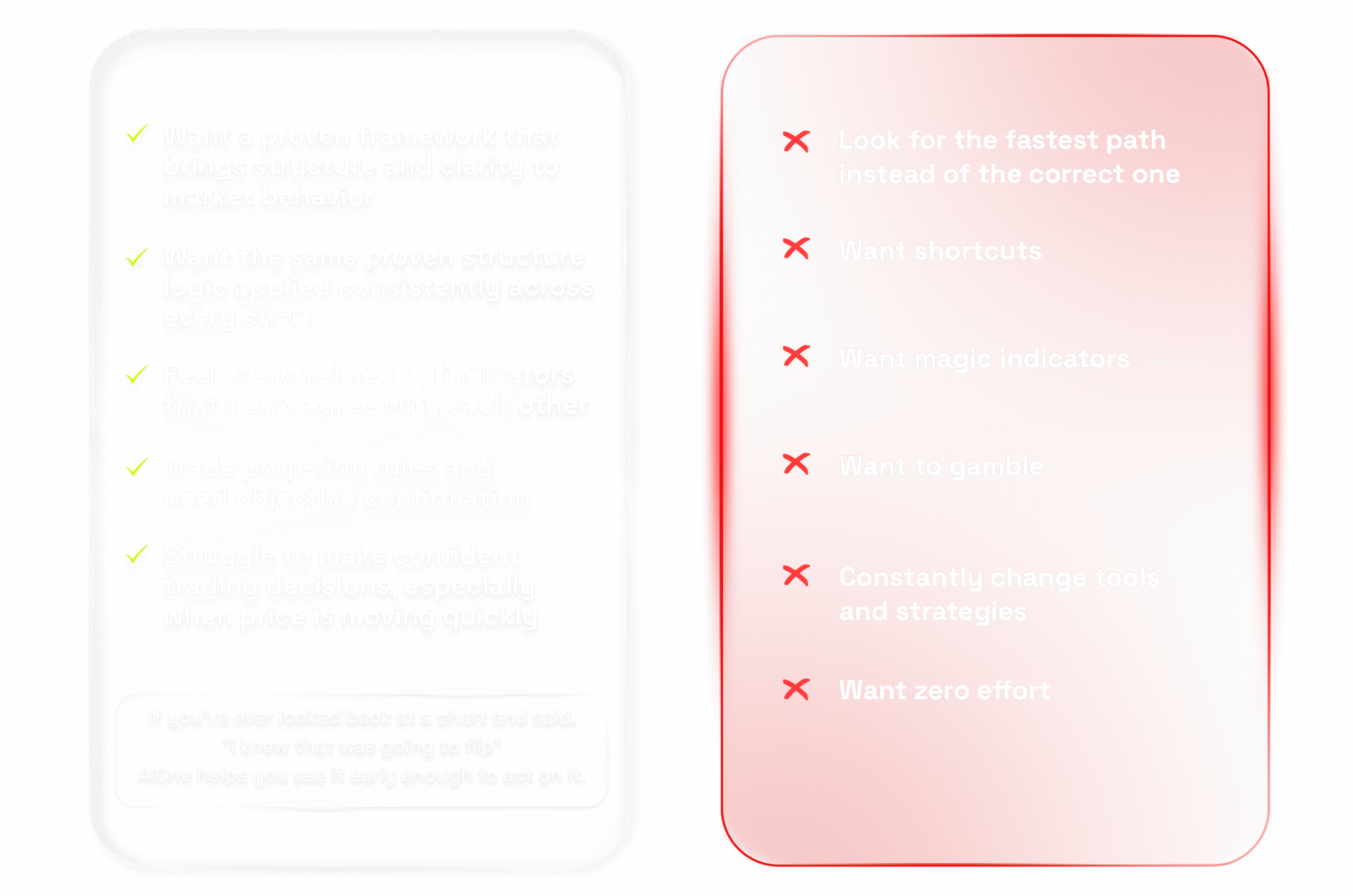 No. AiOne reveals market structure, liquidity, and imbalances so you can make informed decisions. It❜s a professional-grade analysis tool, and we teach you how to use it properly from the ground up.